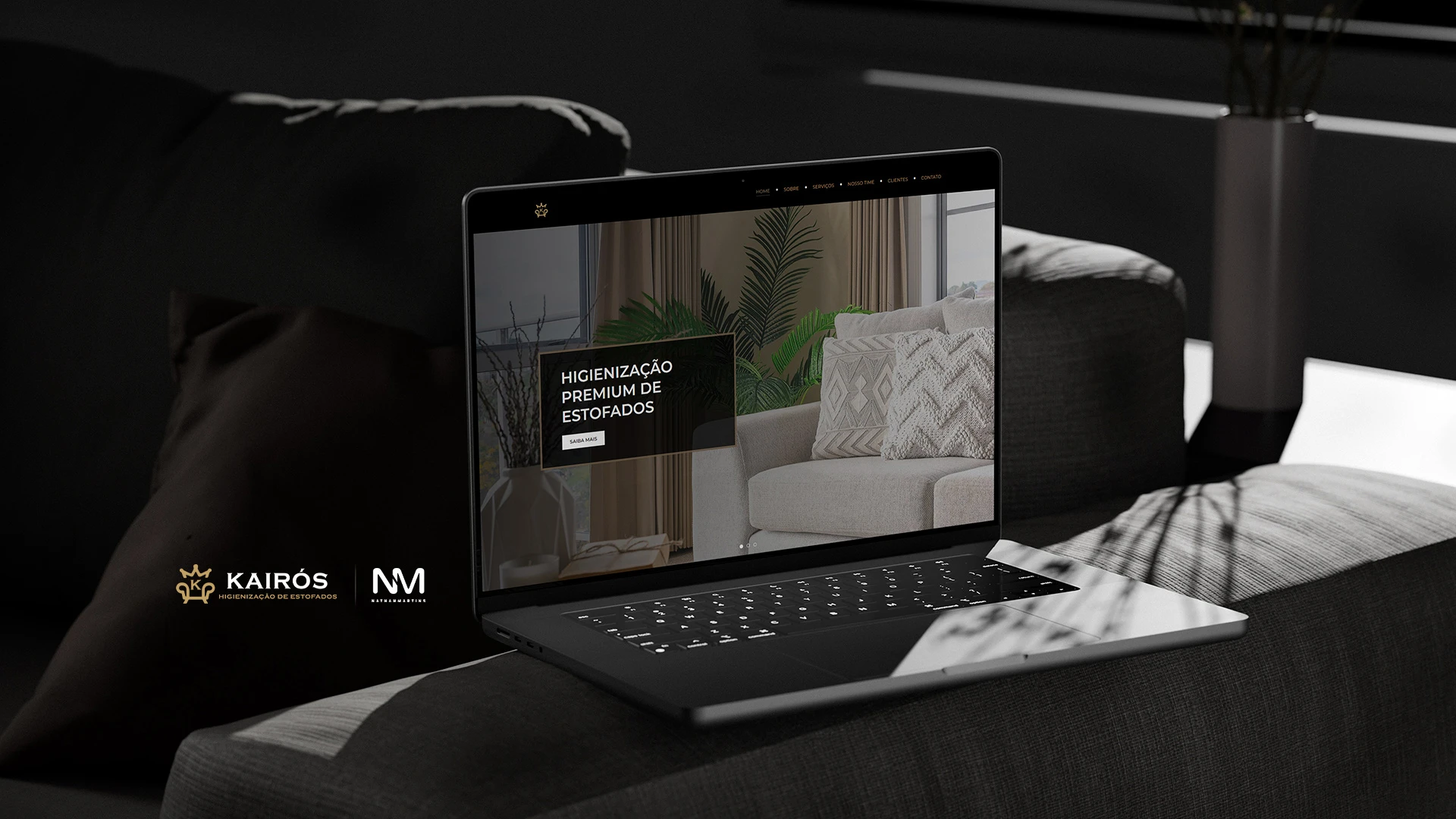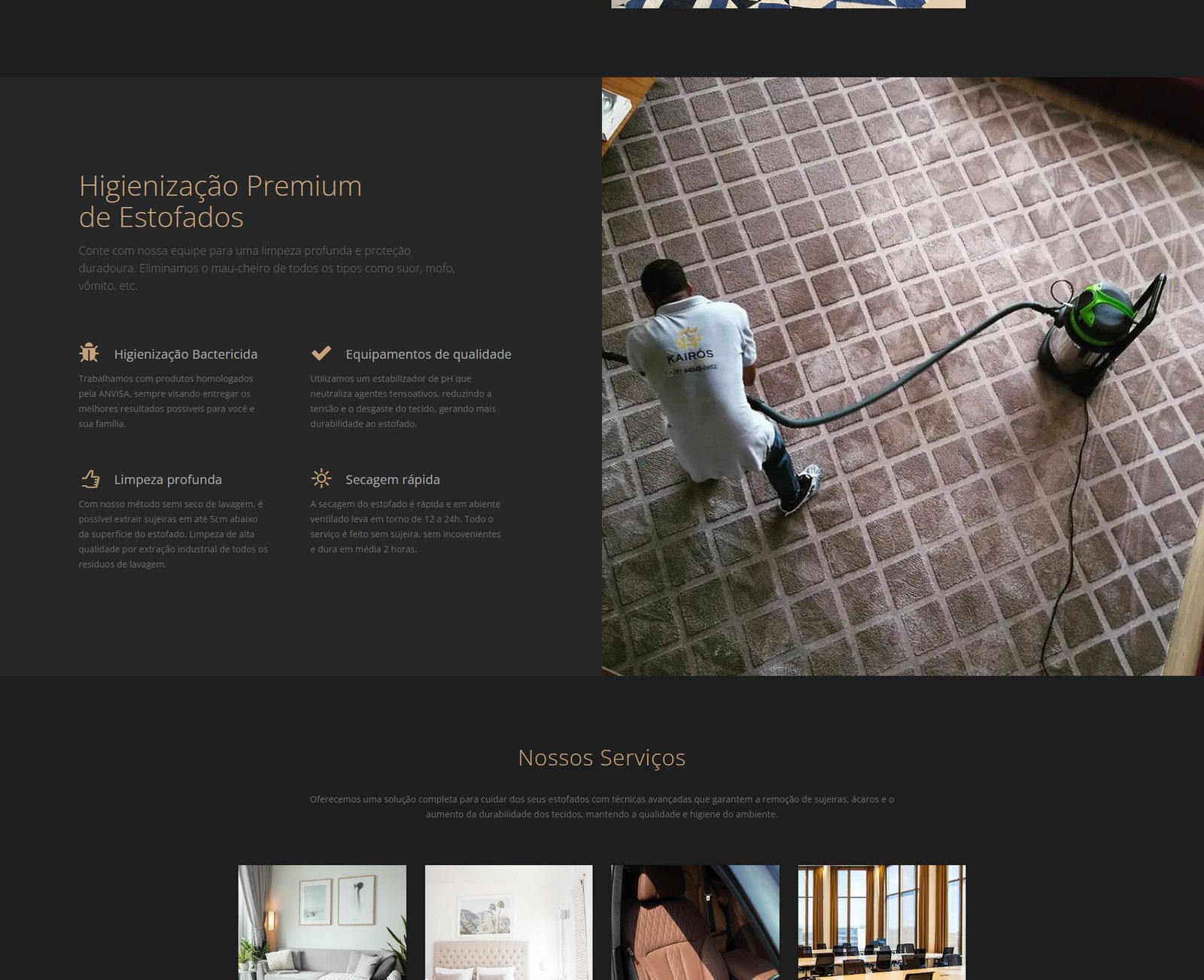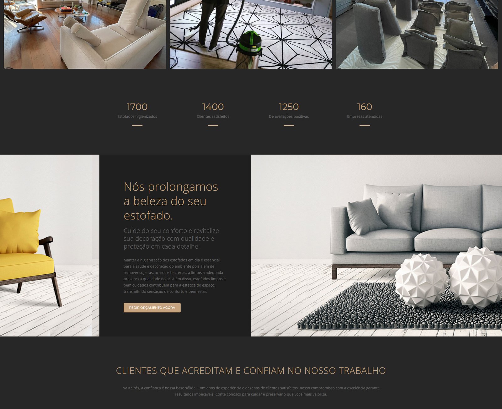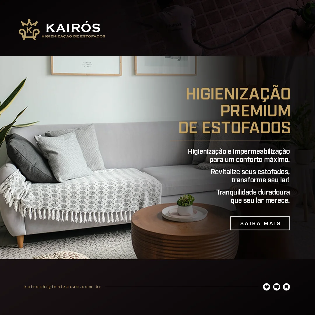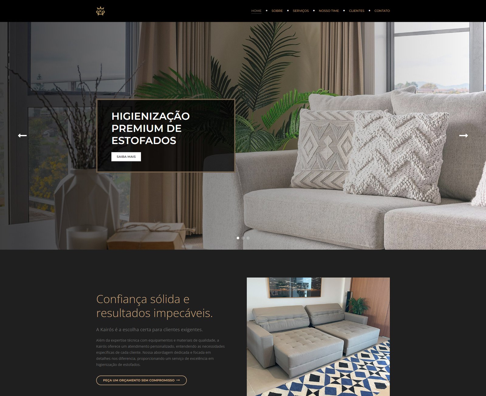 Desenvolvimento de Site Institucional, criativos estáticos e edição de vídeos para rodar anúncios no nicho de higienização de estofados para a empresa Kairós.