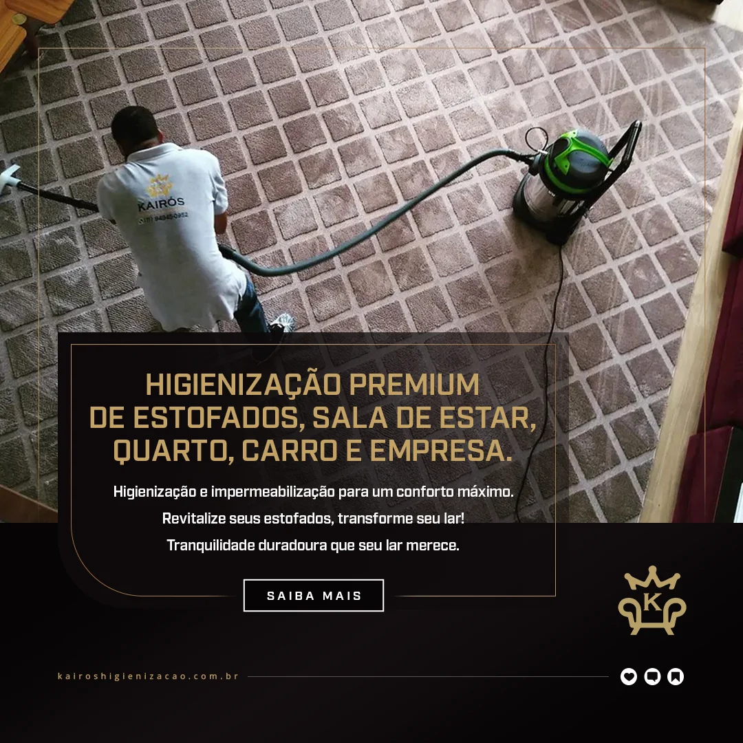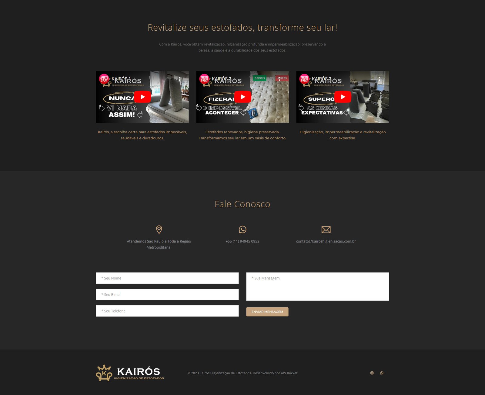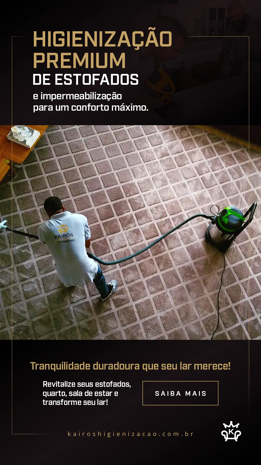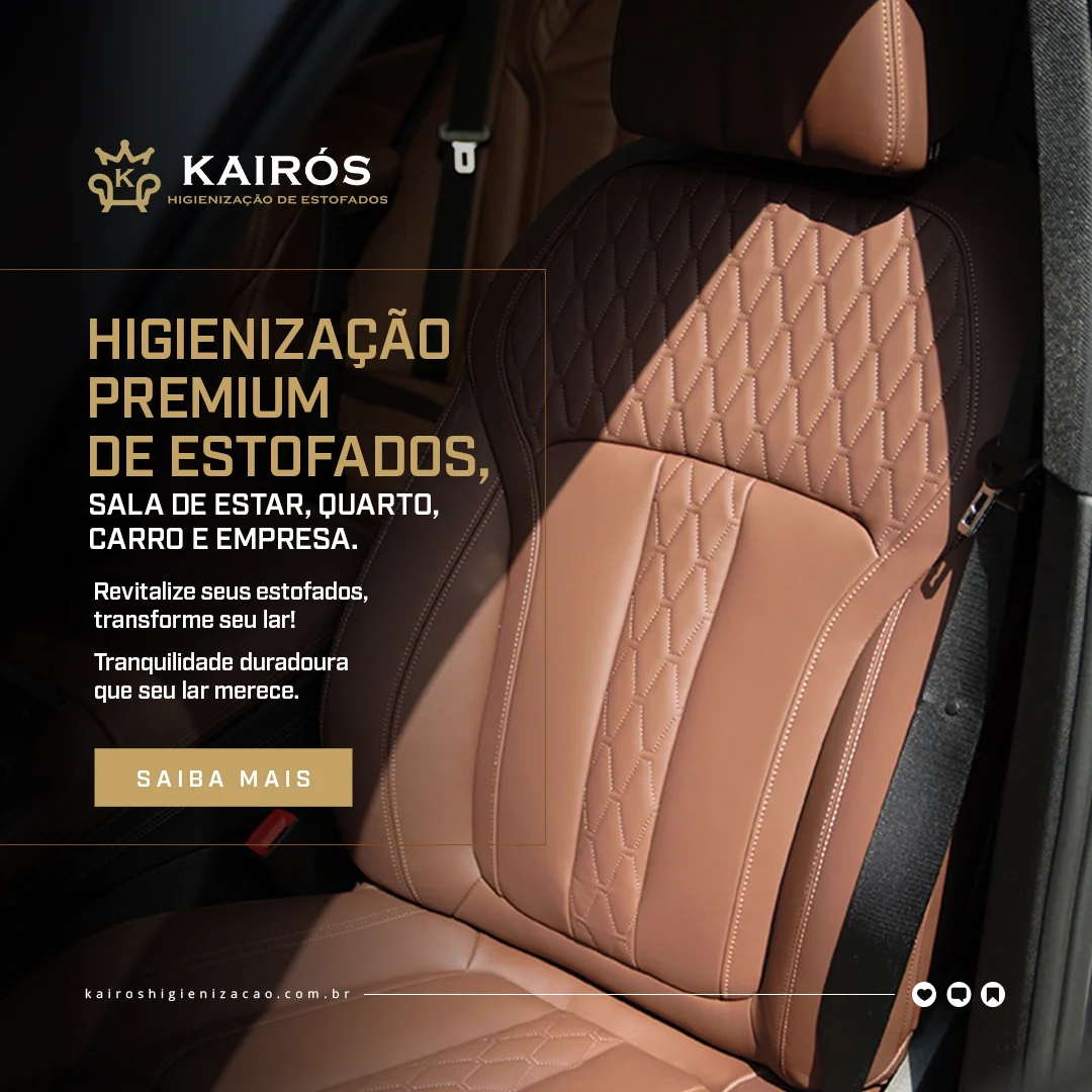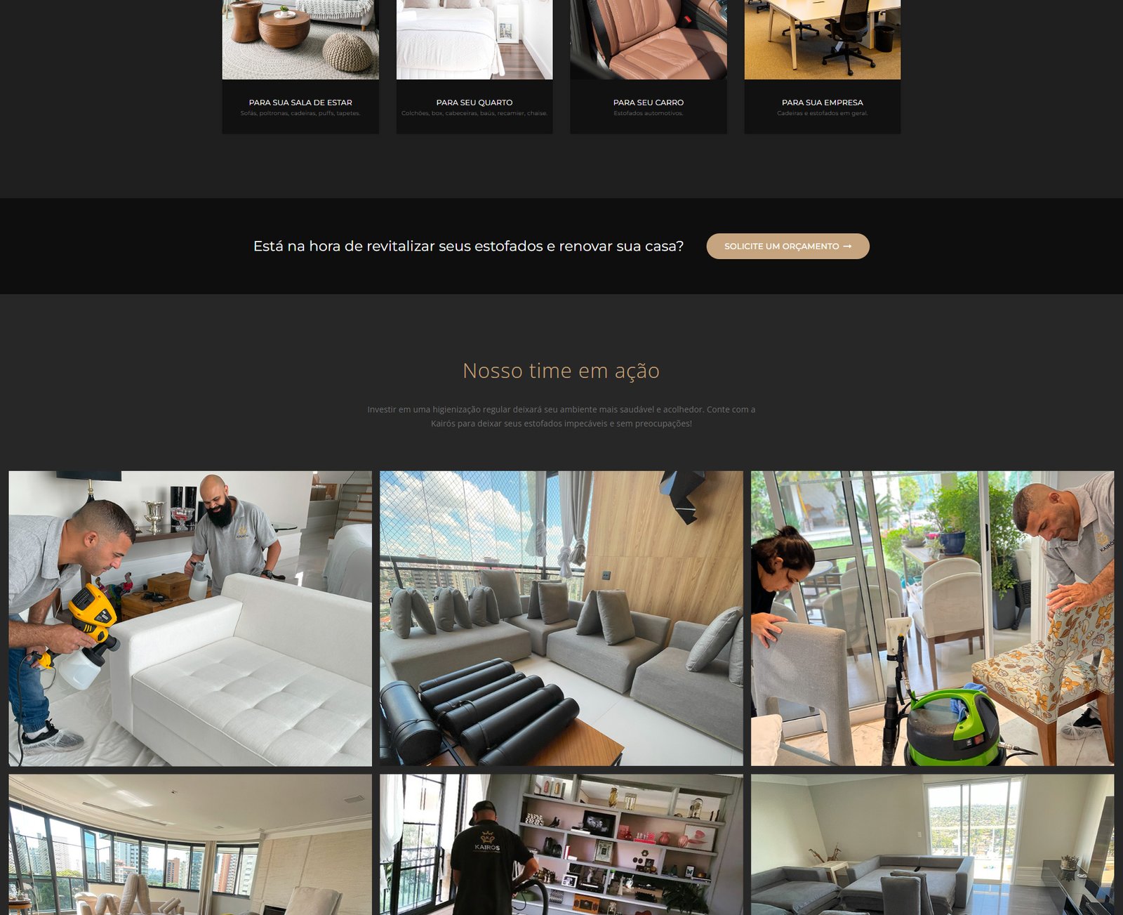 Desenvolvimento de Site Institucional, criativos estáticos e edição de vídeos para rodar anúncios no nicho de higienização de estofados para a empresa Kairós.