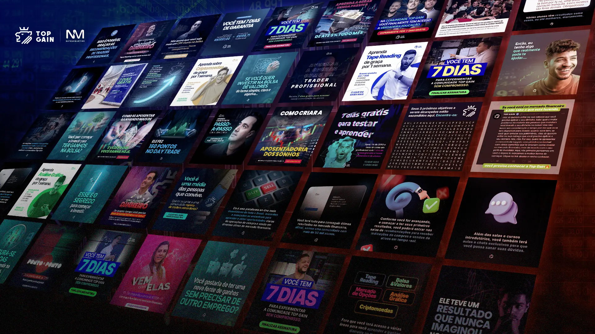 Desenvolvimento de Criativos para captação fria e construção de lista para os lançamentos de produtos no nicho de investimentos para a empresa Top Gain.